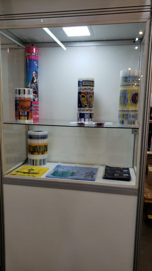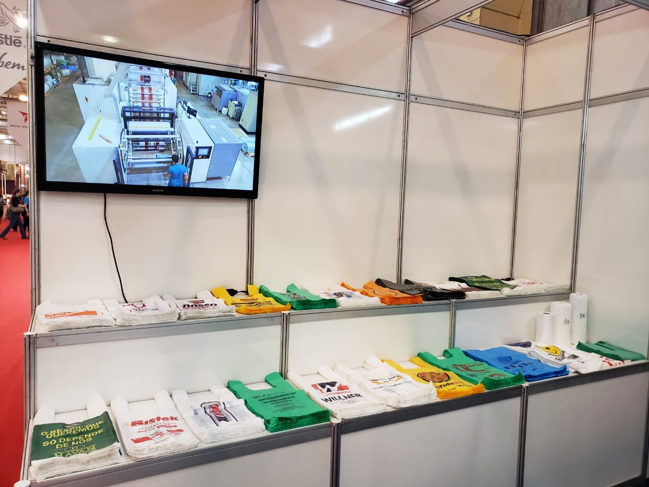 No stand são expostas algumas novidades da linha para varejo, como sacolas plásticas lisas e personalizadas, sacos plásticos e filmes técnicos.