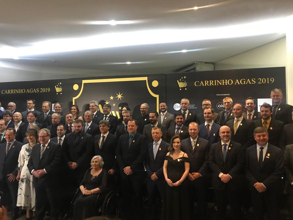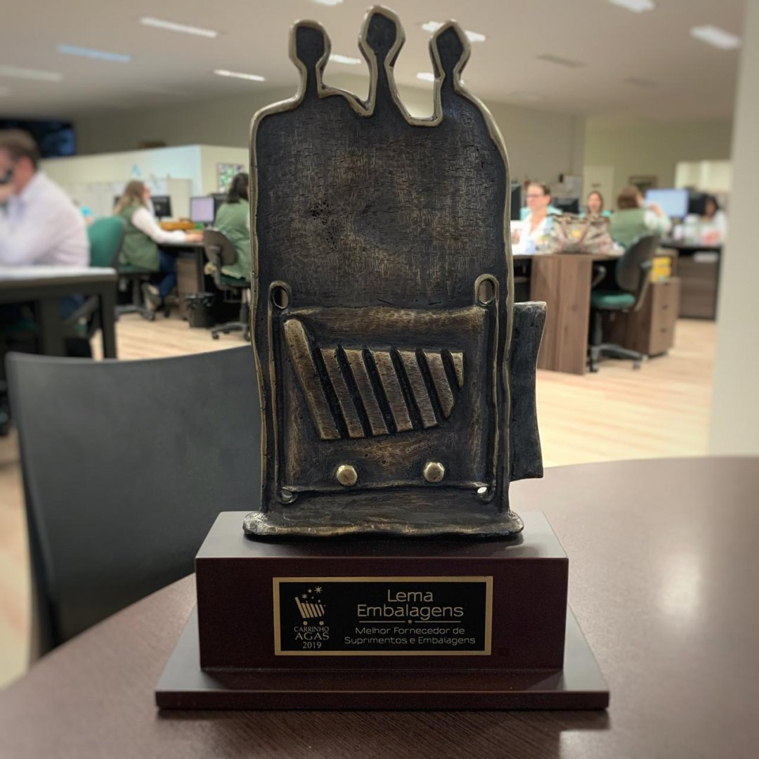 Na última segunda-feira, dia 25 de novembro, a Lema Embalagens recebeu o troféu Carrinho Agas, na categoria empresa mais lembrada no segmento suprimentos e embalagens em todo o setor supermercadista gaúcho. A premiação, que contou com a participação de 42 empresas e personalidades neste ano, foi realizada no Grêmio Náutico União em Porto Alegre, e é reconhecida nacionalmente como uma das mais importantes do ramo supermercadista. Foi criada em 1984 como forma de reconhecimento às indústrias que mais se destacaram e contribuíram para o crescimento de uma economia mais sólida no estado. "Muito nos orgulha sermos a empresa Gaúcha referência em embalagens nos supermercados Gaúchos, no primeiro ano desta categoria. Nosso agradecimento a todos os clientes e equipe por esta homenagem que coroa nossos 18 anos de trabalho." Mauricio Alexandrini - diretor.