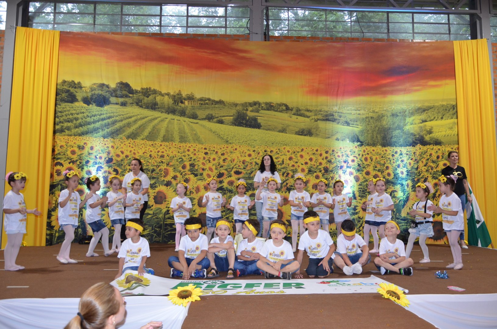 Mais um ano se finda e com ele chega o nosso encontro, uma linda forma de ação de graças... A nossa inspiração esse ano foram os girassóis, inspiração que vai muito além da beleza, sim, eles são maravilhosos e emanam luz a quem vê, porém o que realmente faz a diferença é a forma com que interagem entre si. Eles se direcionam ao sol para receber seu brilho, porém, quando este está ausente, se voltam uns aos outros e emprestam a própria energia para iluminar o outro. Esta é a lição, não vivemos sozinhos, somos dependentes uns dos outros, e nos desenvolvemos a partir de interações, de quanto valorizamos e acreditamos na vida, na convivência com nossos irmãos. Prestamos homenagem também o Grupo Bigfer pelos 30 anos de história, que por sua luta e perseverança dá o suporte para que nossa escola possa seguir e transformar tantas vidas! Confira as fotos do evento!