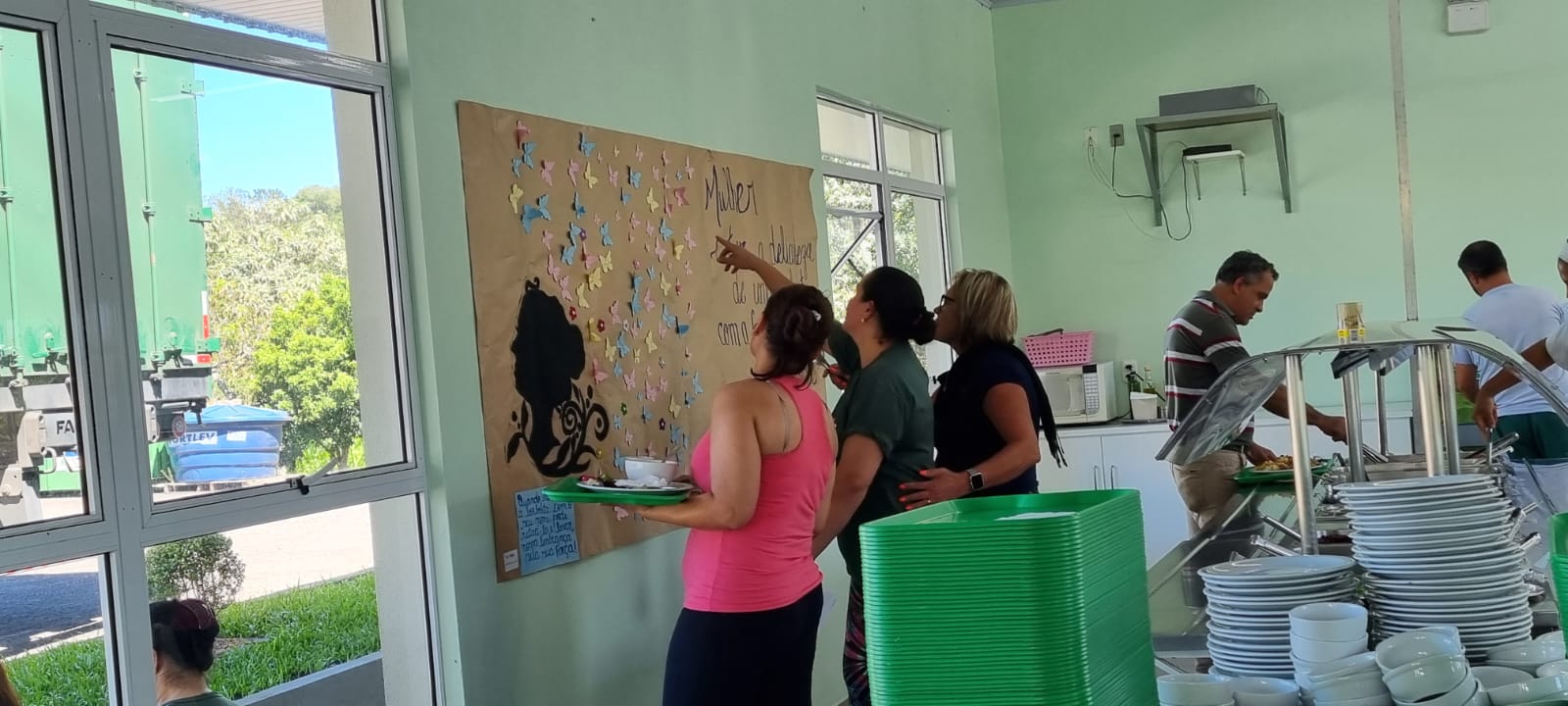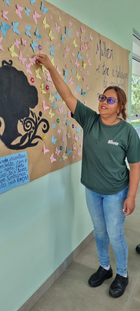 No dia 08 de março comemorasse o dia internacional da Mulher. Realizamos uma ação comemorativa a esta data especial com nossas colegas da matriz, filial 05 e da Lema Embalagens em Farroupilha. Os alunos do contraturno criaram um painel muito especial com inúmeras borboletas, cada uma representando uma colega. Confira algumas fotos: